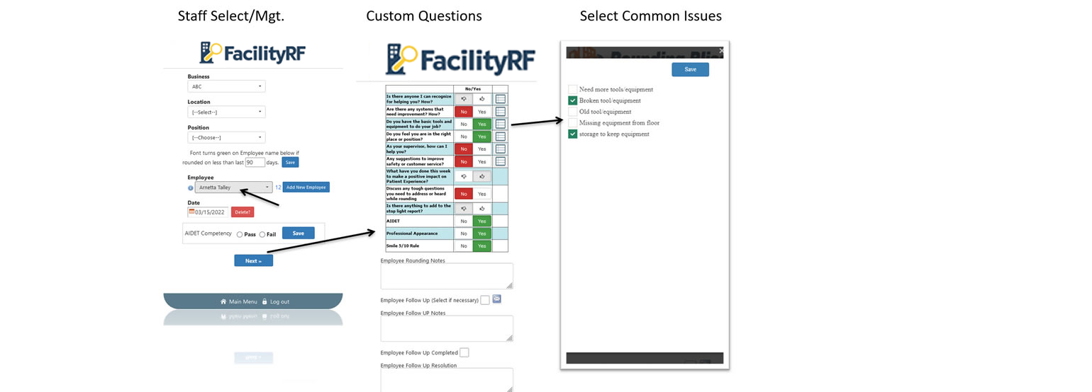 These codes can be created for Surveys, Patient or Resident Requests, Equipment Allocation to track who checked out equipment and WHERE in the facility and WHEN they returned it.
